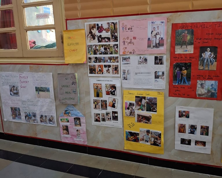 The learners participated in a creative activity titled “The Gift of My Family.” They beautifully expressed their love and gratitude towards their family members by making posters that showcased how they spent their Diwali break with their loved ones.
