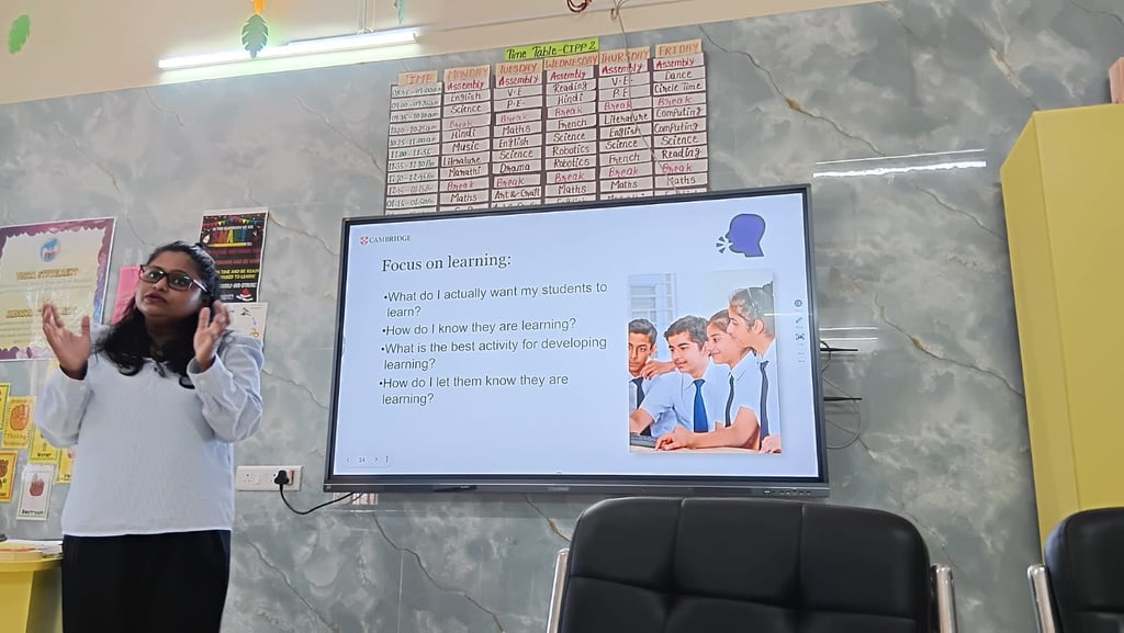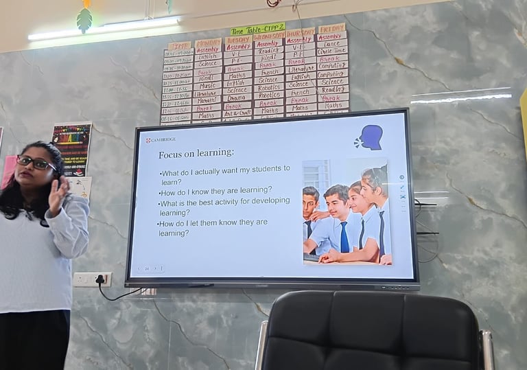 17th September - The resource person was Ms. Debarati Ghosh. She introduced essential Cambridge pedagogical tools like KWL charts, RAG self-assessment, and active learning strategies to enhance classroom engagement.